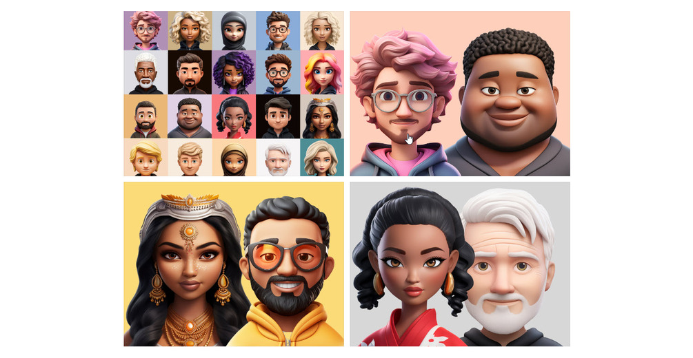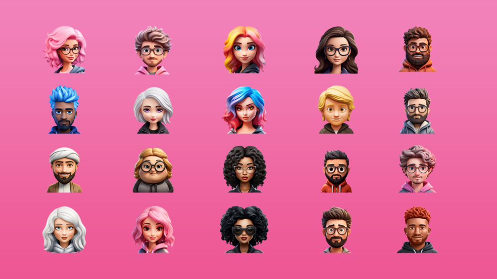 This large set of ready-made 3D Animoji-style avatars offers a diverse range of digital characters. The set includes various styles, features, and outfits, catering to a wide audience and allowing for personal customization. Ideal for messaging, video calls, social media, or gaming, these avatars add a fun, dynamic element to digital communication.